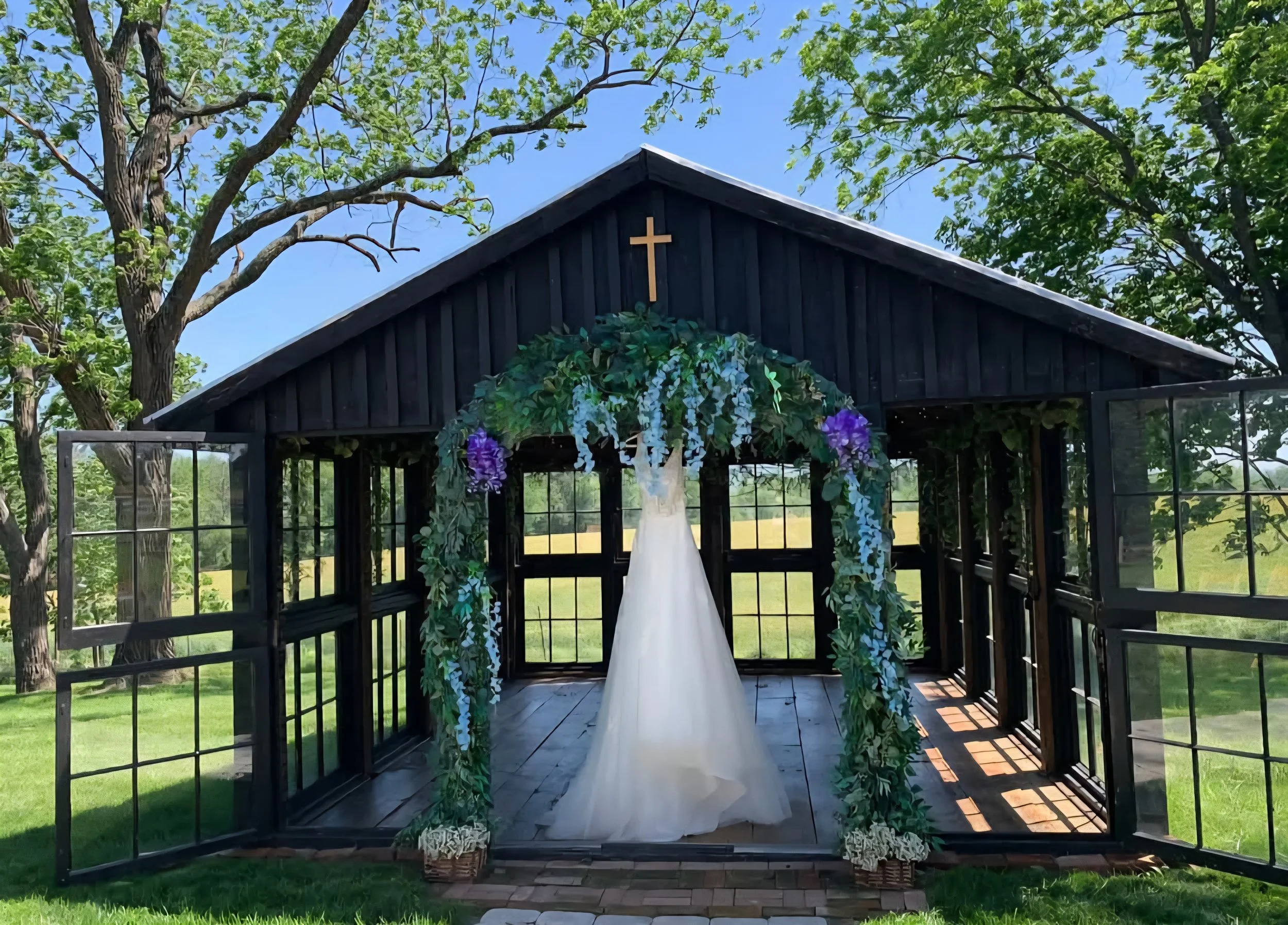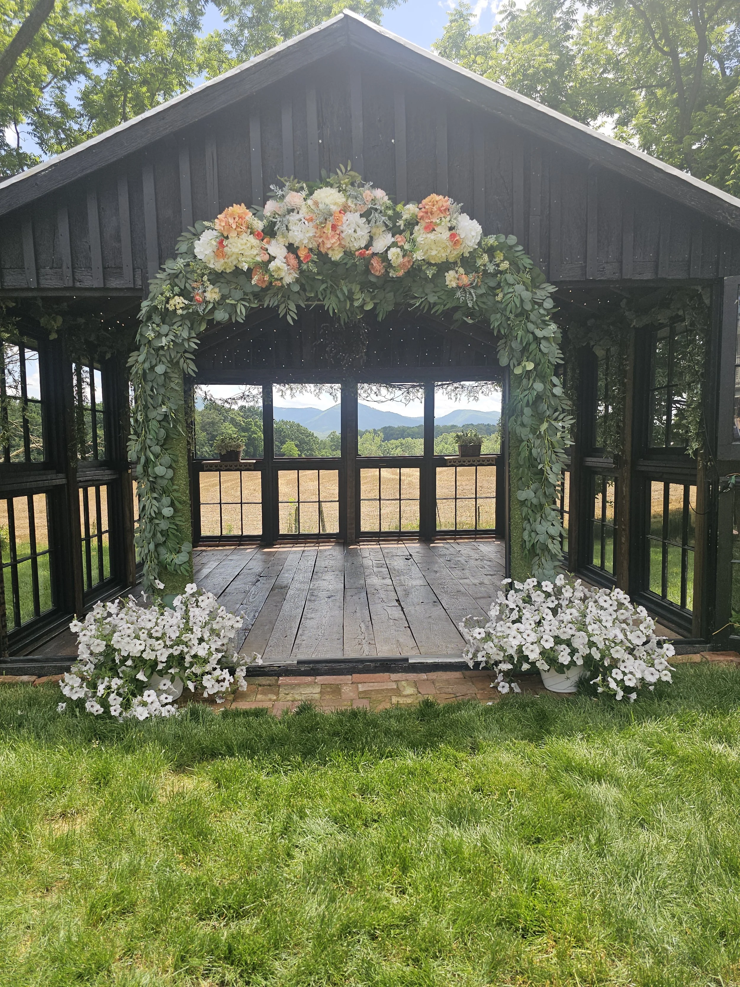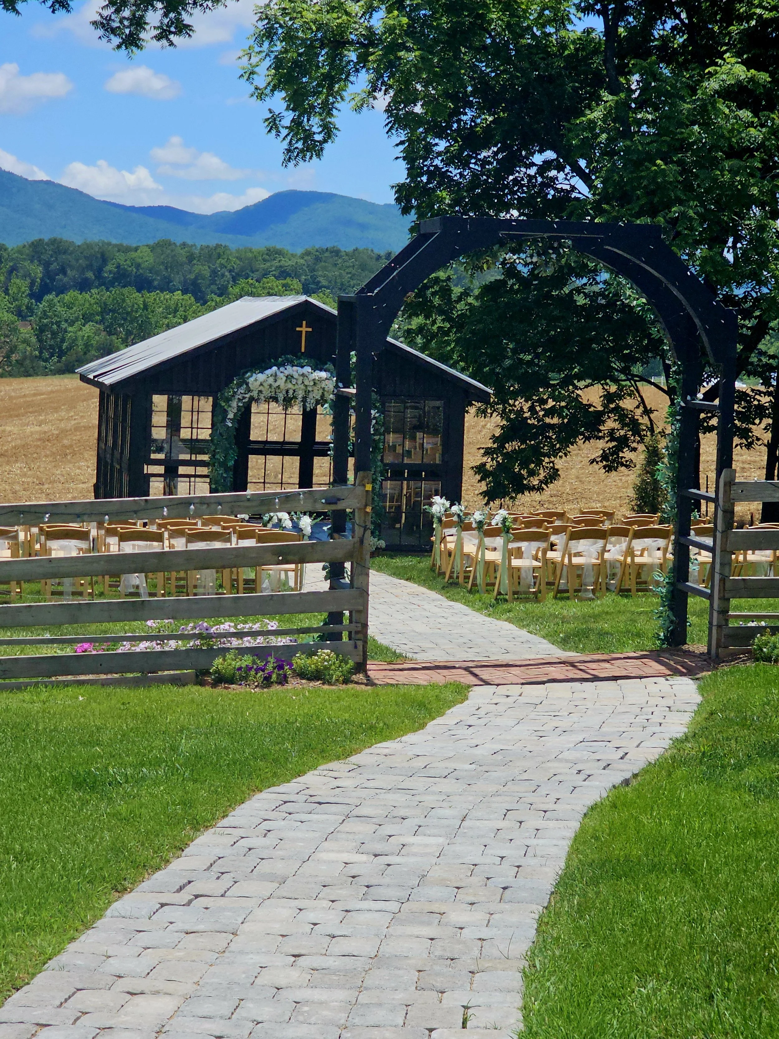 Our greenhouse is over 100 years old and the perfect spot for you to begin your commitment as husband and wife. The upper back windows open to provide unobstructive, breathtaking views of the Blue Ridge Mountains as rolling farmland envelopes you in charm. The front windows also open to provide your guests with a perfect view inside. Tranquility abounds with the sounds of nature from birds singing and crickets chirping to the occasional rooster crow heard blowing across the meadows. Relax and enjoy your moment.