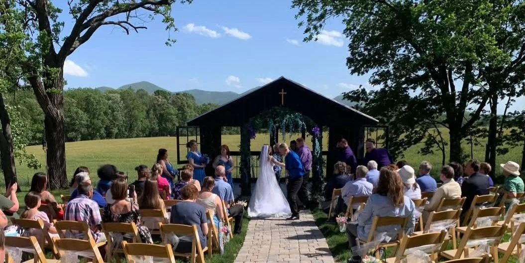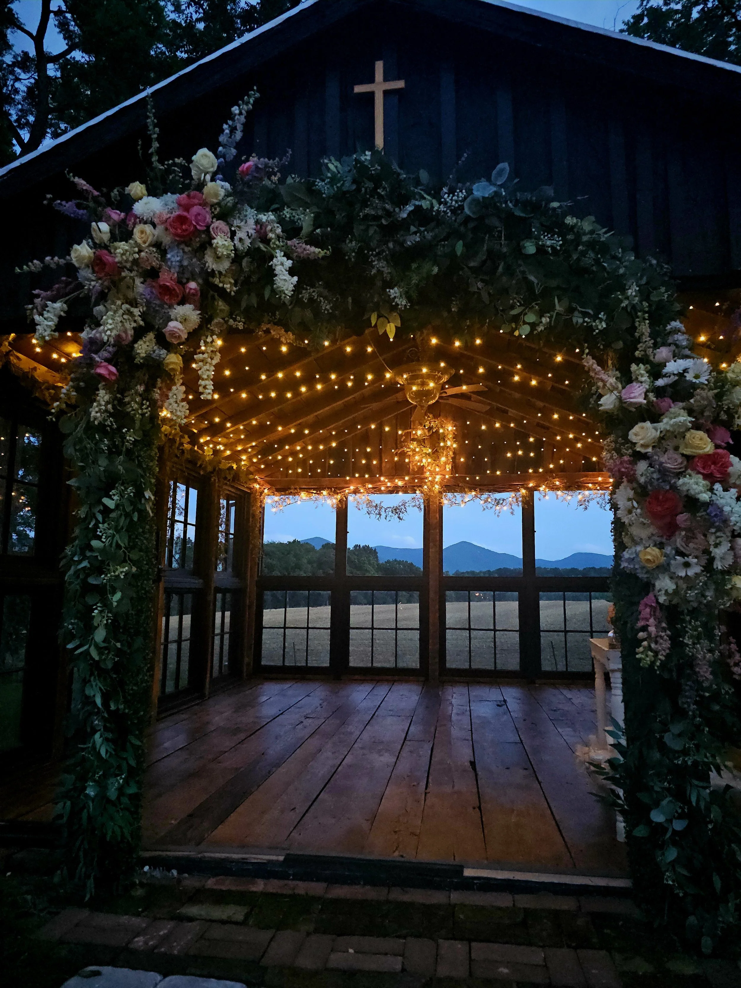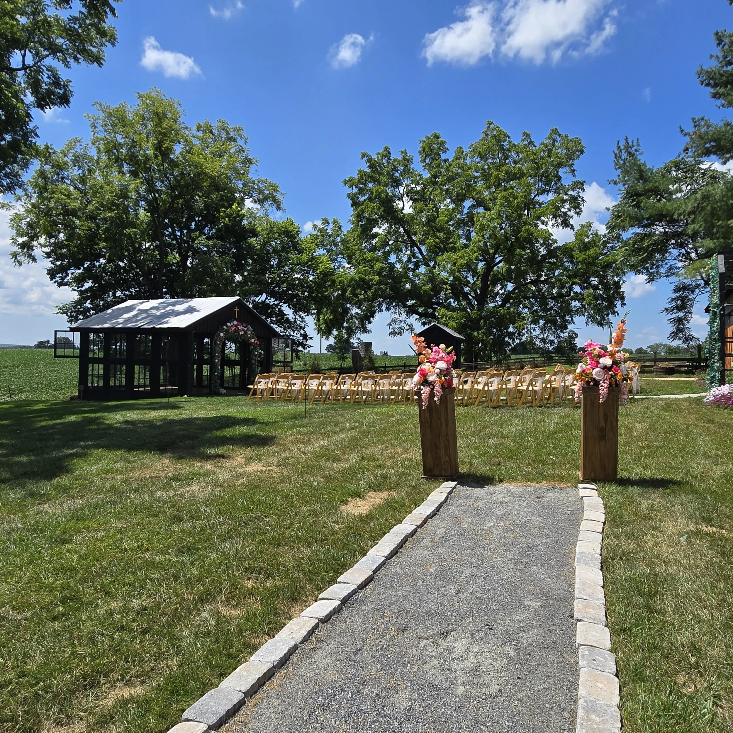Our greenhouse is over 100 years old and the perfect spot for you to begin your commitment as husband and wife. The upper back windows open to provide unobstructive, breathtaking views of the Blue Ridge Mountains as rolling farmland envelopes you in charm. The front windows also open to provide your guests with a perfect view inside. Tranquility abounds with the sounds of nature from birds singing and crickets chirping to the occasional rooster crow heard blowing across the meadows. Relax and enjoy your moment.